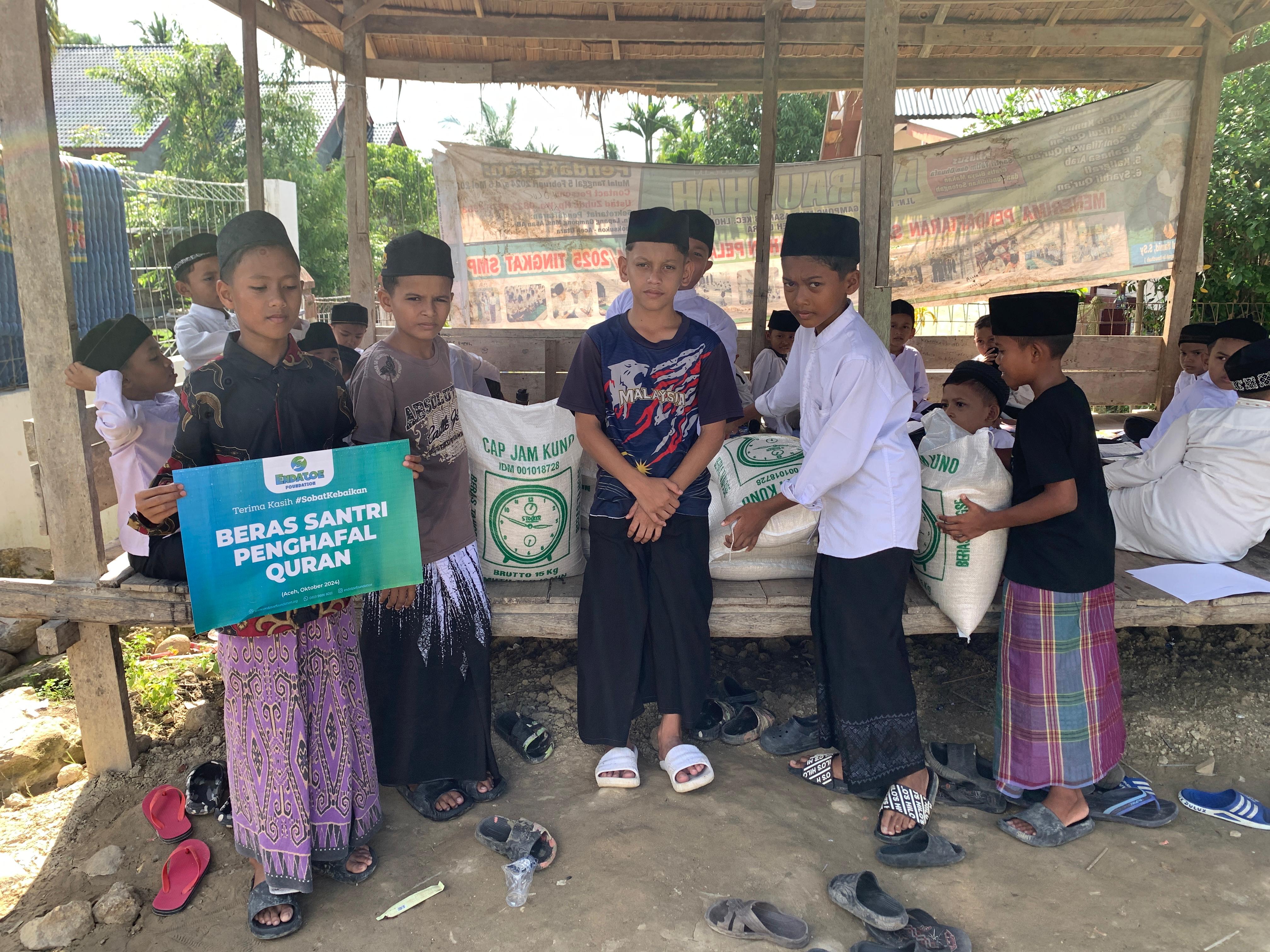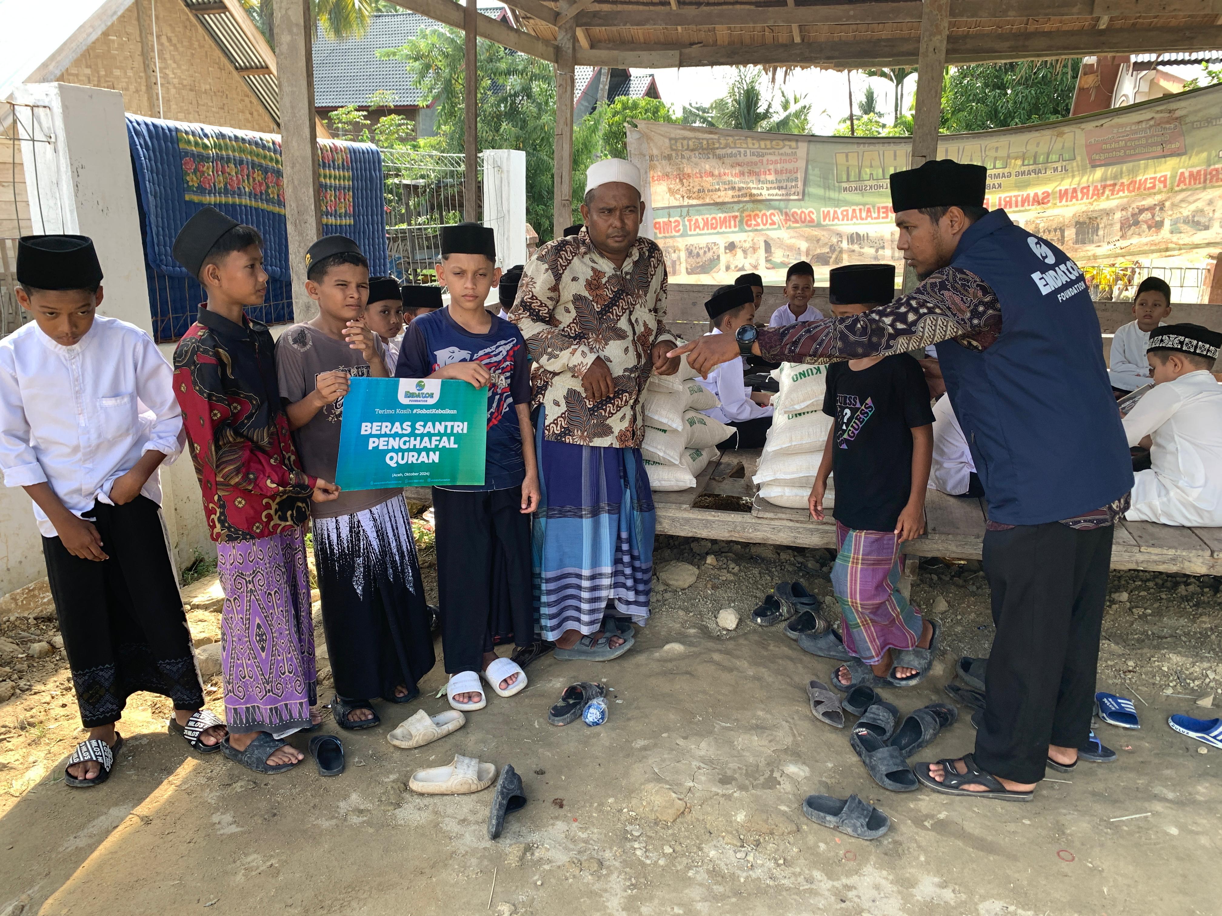 Sahabat Pemurah, di Desa Meunasah Asan, Kabupaten Lhoksukon, Aceh Utara, terdapat Pondok Pesantren Tahfiz Quran Ar-Raudhah, tempat puluhan pelajar bergelut untuk menghafal Al-Quran. Dengan semangat yang luar biasa, mereka menghabiskan hari-hari mereka dengan menyemai ayat-ayat suci ke dalam hati mereka, walaupun di tengah-tengah keterbatasan hidup.