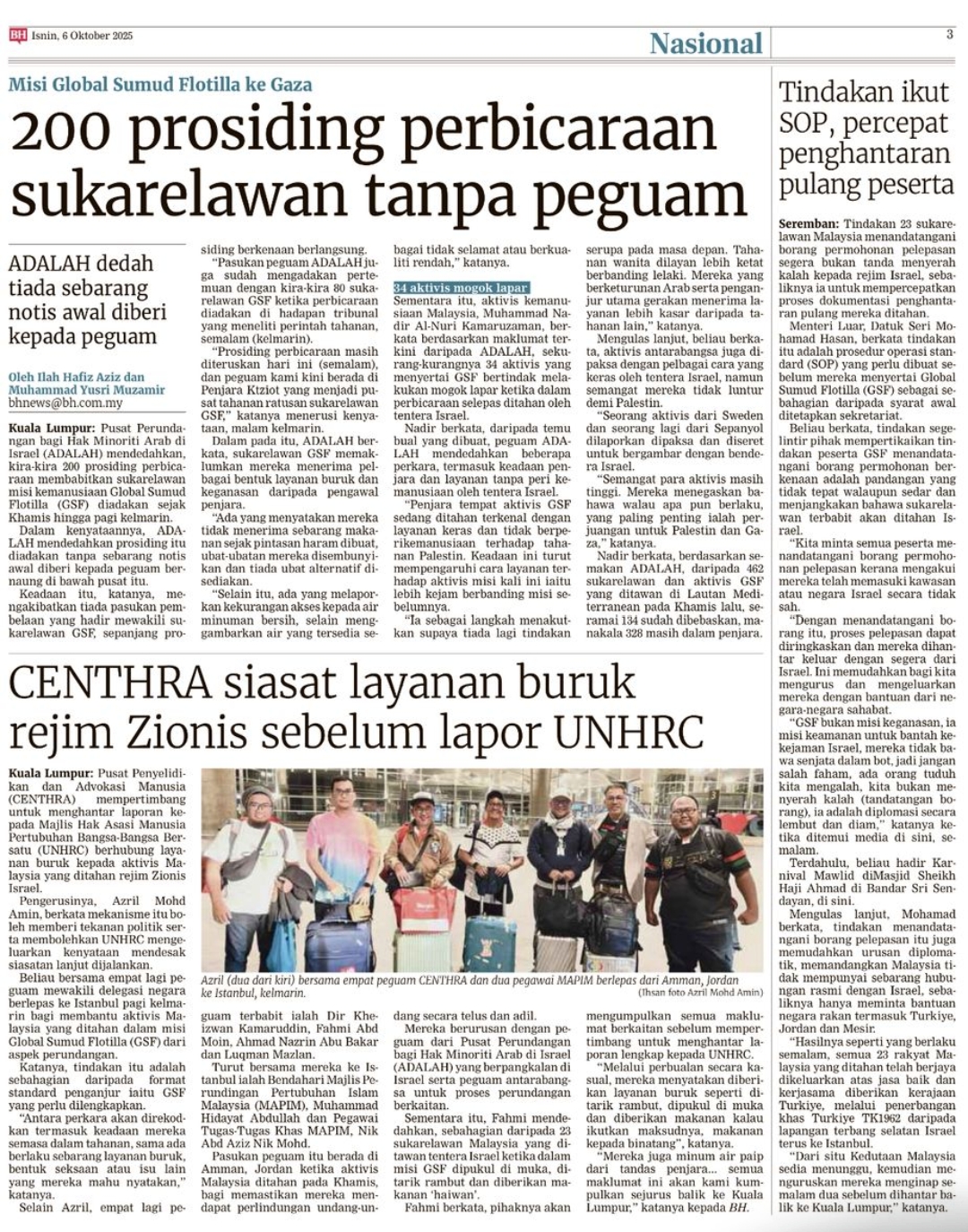 Pada saat getir ini, pasukan guaman sukarelawan dari Malaysia telah berlepas ke Jordan untuk memberi sokongan perundangan antarabangsa kepada misi kemanusiaan SUMUD Flotilla ke Gaza.