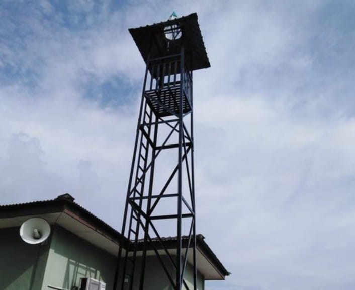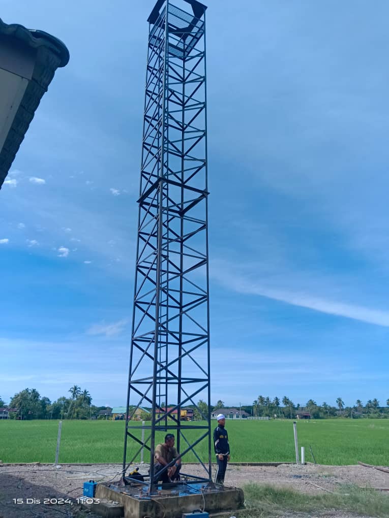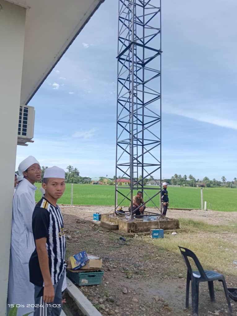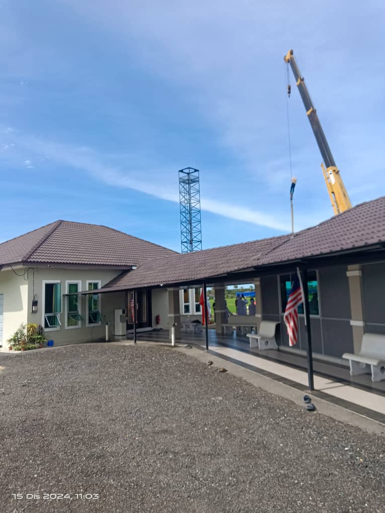 Assalamualaikum muslimin dan muslimat sekalian, alhamdulillah ,berkat sumbangan daripada para penyumbang ,menara azan ini telah berjaya didirikan dengan menggunakan krane . Pekerja-pekerja kontrak juga bertungkus-lumus dalam memateri bagi mengukuhkan lagi menara azan ini.