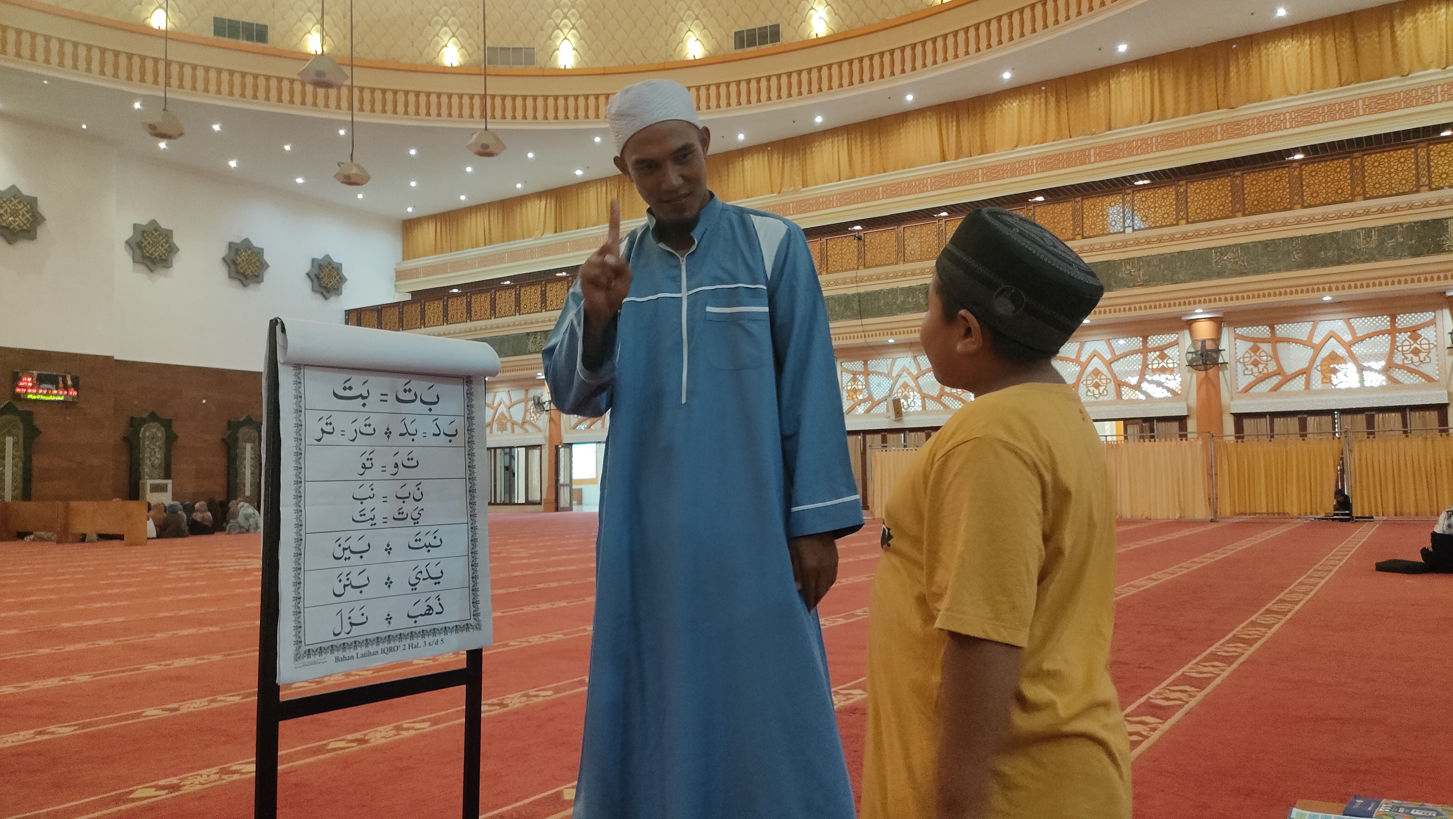 Cikgu Maman ketika mengajar kanak-kanak mengenal huruf Al-Quran.