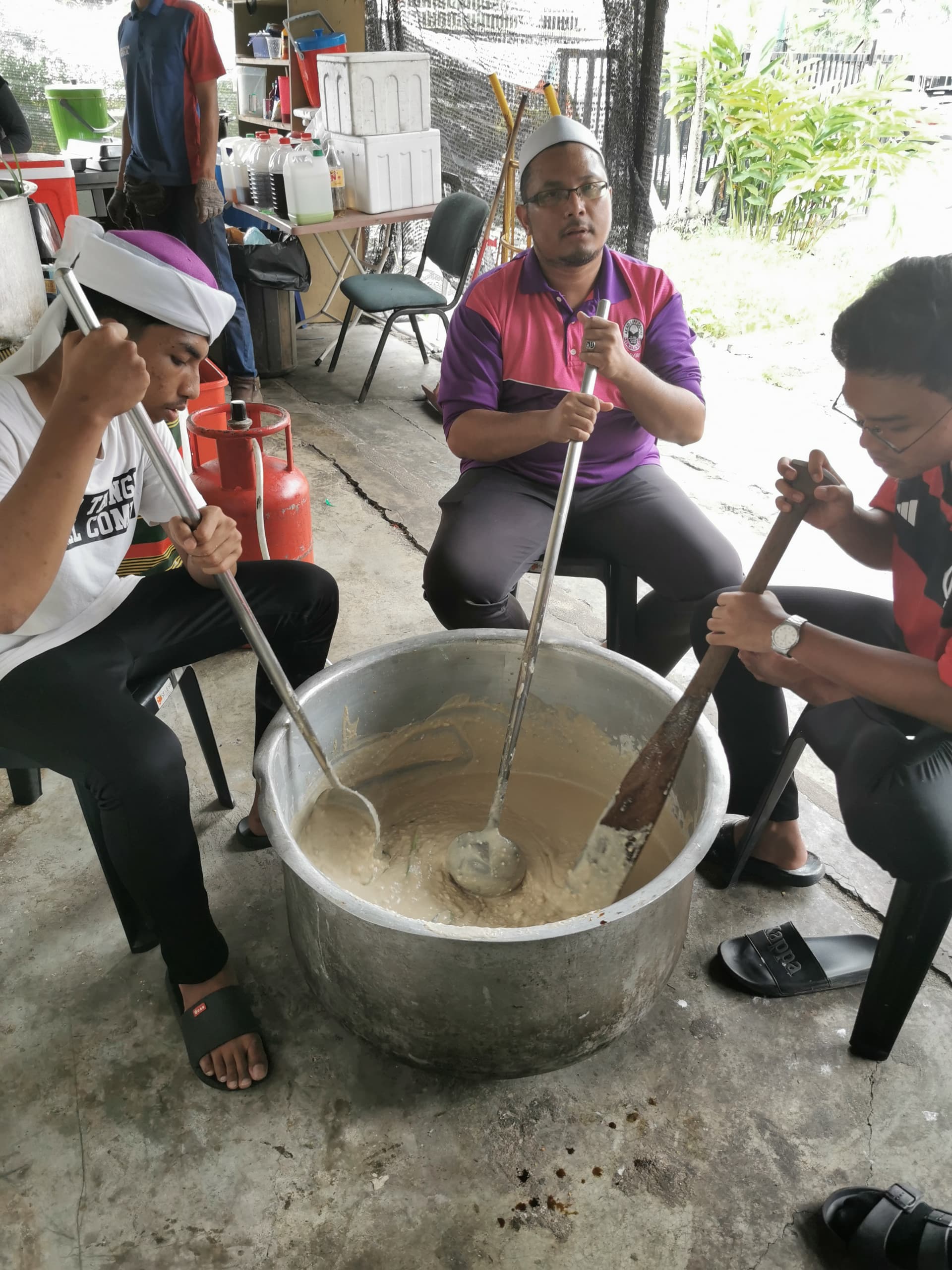 Wajah ceria bersama-sama bergotong royong memasak