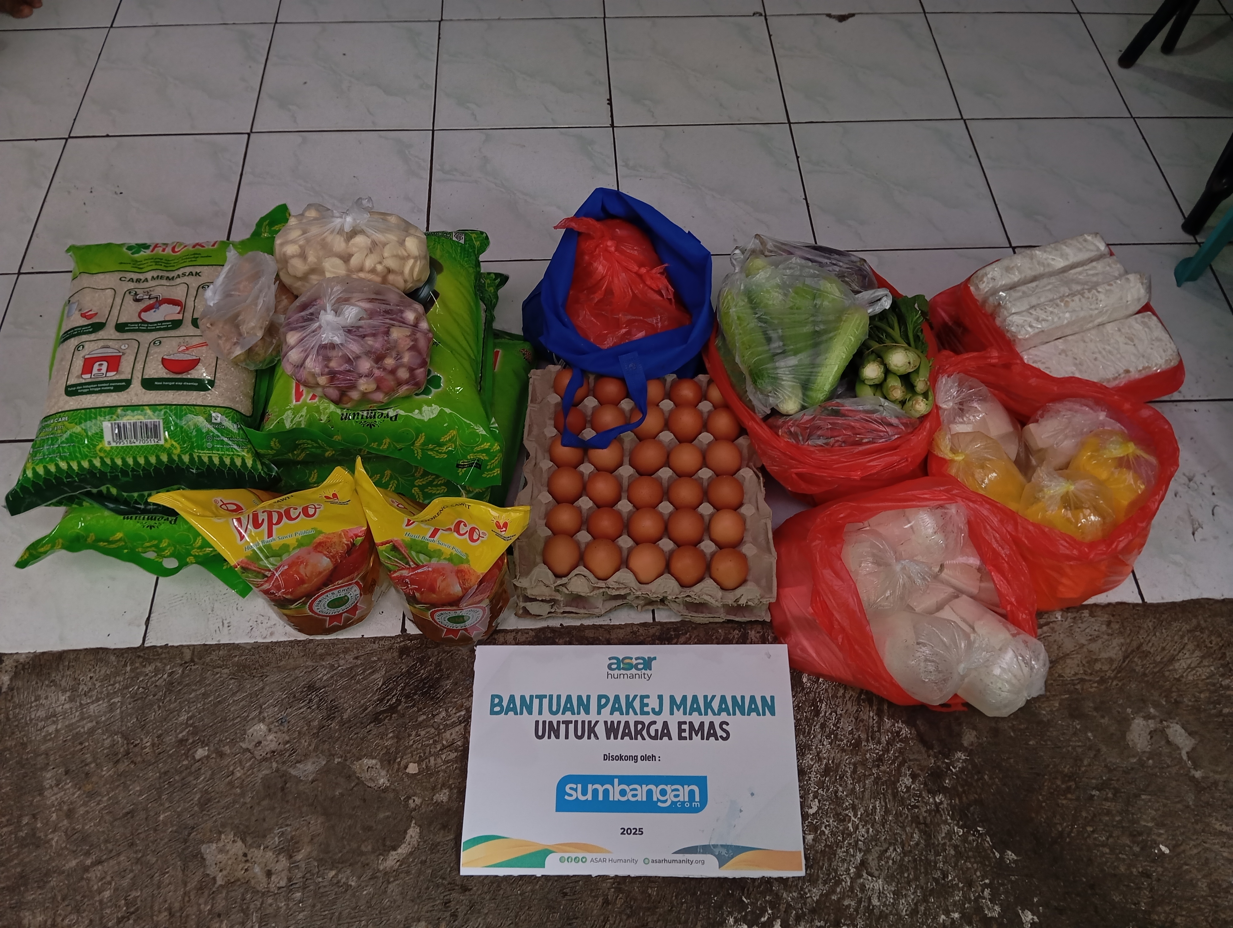ASAR Humanity mengajak anda semua untuk turut serta dalam program sedekah barangan keperluan asas ini. Sumbangan anda, walau sekecil mana sekalipun, akan digunakan untuk menyediakan pakej keperluan asas yang terdiri daripada makanan asas seperti beras, minyak, tepung, gula, dan barangan keperluan harian lain.