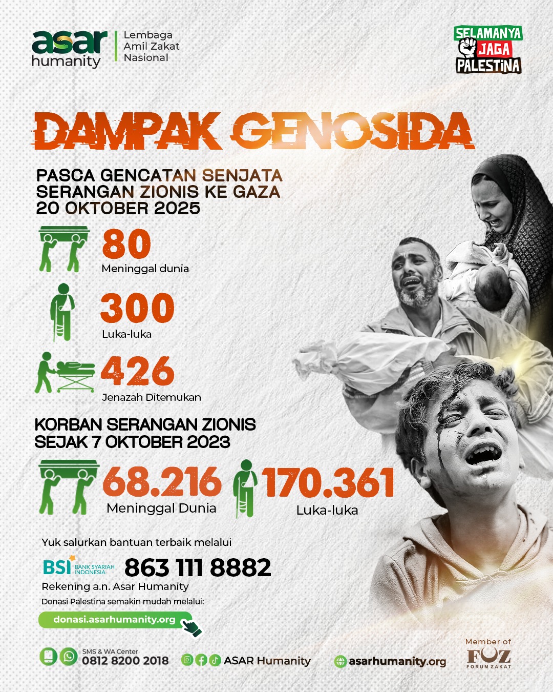 Walaupun telah diumumkan gencatan senjata pada 20 Oktober 2025, realiti yang sedang berlaku di Gaza Strip menunjukkan bahawa derita rakyat Palestin masih berlanjutan dan semakin memburuk.